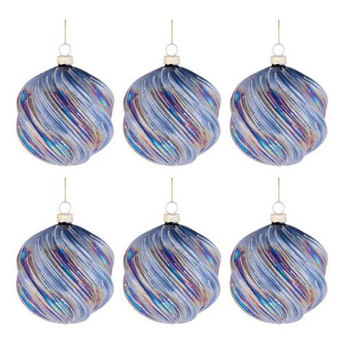 Melrose International Iridescent Swirled Glass Ornament (Set of 6)