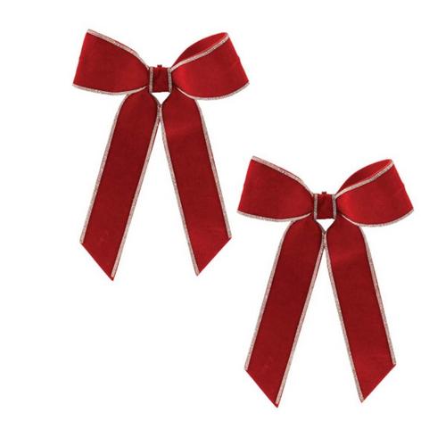 Add a touch of luxury to your holiday decor with this jeweled holiday bow. Featuring soft polyester fabric and chic jewel bead accents, this bow brings elegance and sparkle to your seasonal displays. The wired edges and convenient clip on the back make it easy to hang on your Christmas tree, wreath, or floral arrangements. Sold in a set of two, these bows are perfect for elevating your winter decor with a pop of festive glamour.