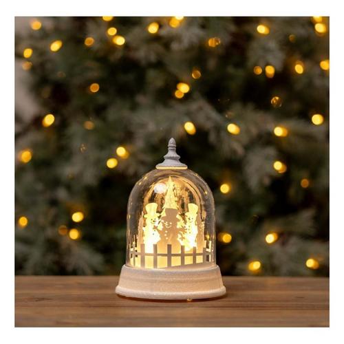 Bring the magic of the holiday season to life with this LED Rotating Snowman Globe. Featuring wintry white tones and a classic bell jar globe design, this enchanting piece showcases whimsical snowman characters rotating around a festive Christmas tree. The built-in LED lighted feature adds a warm glow, perfect for illuminating your holiday displays. With a 6-hour timer, USB power option, and battery compatibility (3 AA batteries, not included), this globe is a versatile and charming addition to any tabletop, shelf, or mantle alongside seasonal floral arrangements or holiday figurines.