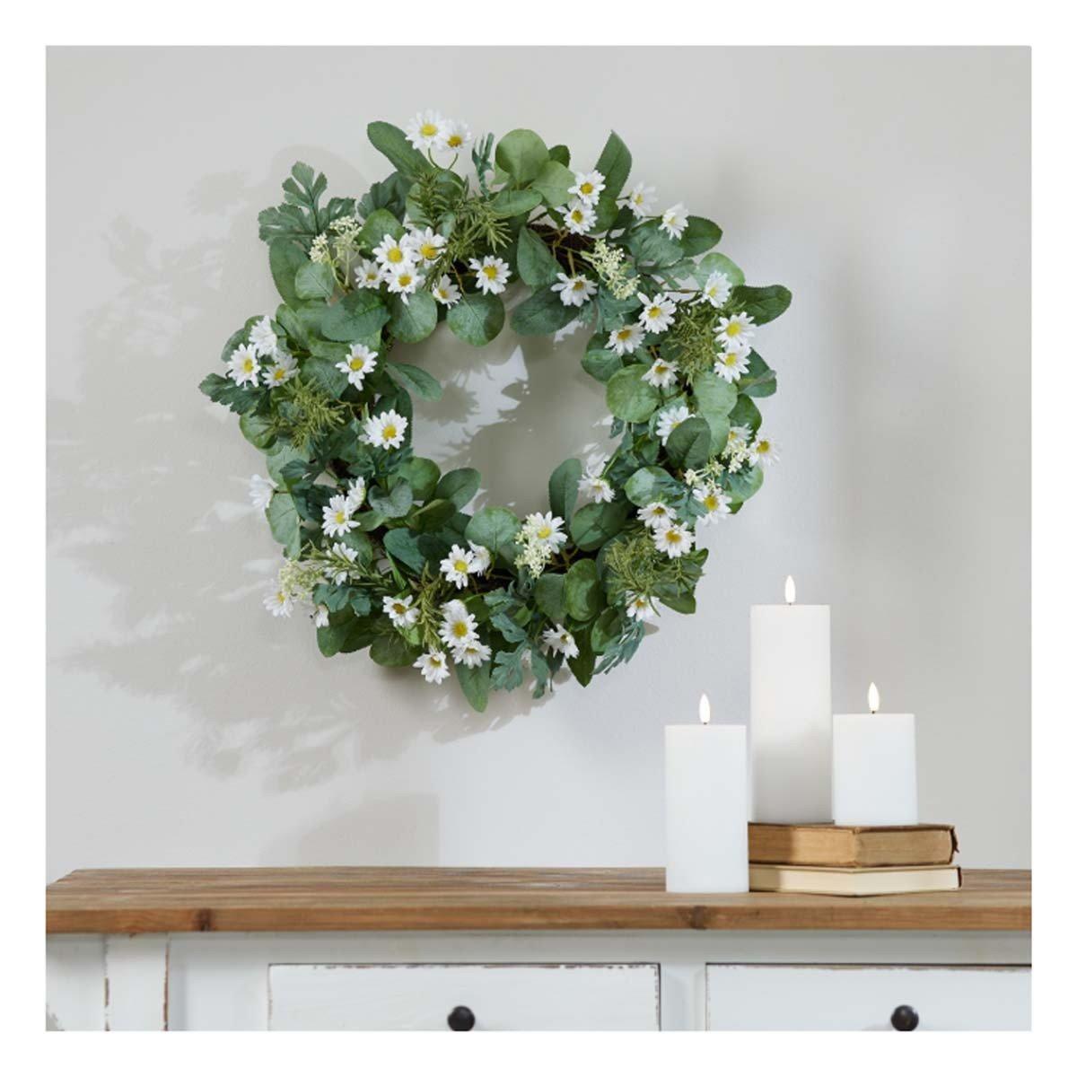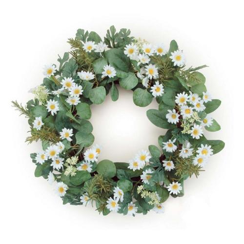 Melrose International Mini Daisy and Foliage Wreath 22"D