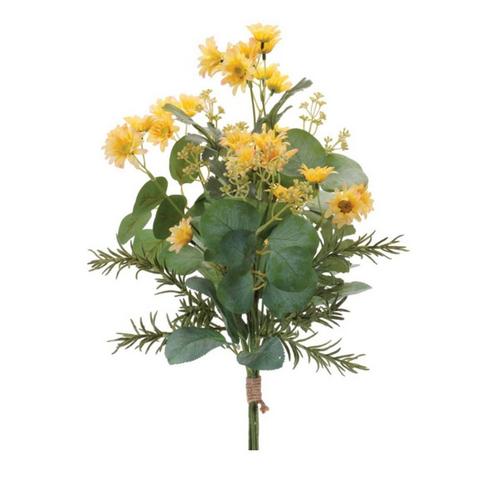 Add cheerful charm to your décor with this Mini Daisy & Eucalyptus Bundle. Featuring daisies paired with soft eucalyptus greenery, each bundle is tied with rustic raffia string for a fresh-from-the-garden look. With wired stems and branches, these 24.5-inch tall faux bundles are easy to shape and style. Sold in a set of 2 matching pieces, these flowers are perfect for use in tabletop vases, spring floral arrangements, garlands, wreaths, or hanging baskets to brighten your home with a burst of color.