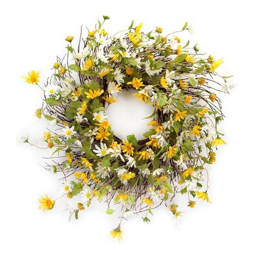 Melrose International Mixed Daisy Floral Wreath 24"D