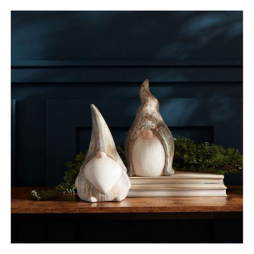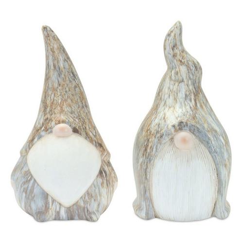 Melrose International Modern Terra Cotta Gnome Figurine with Marble Finish (Set of 2)