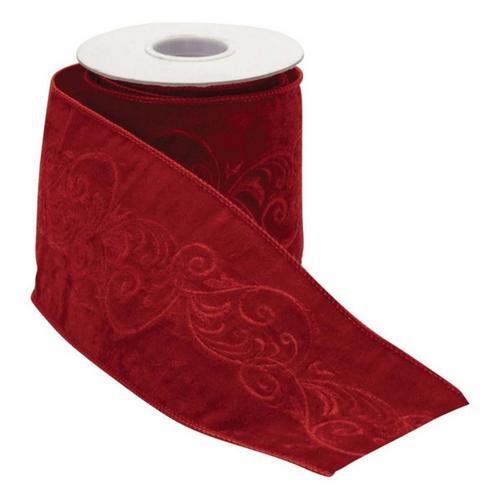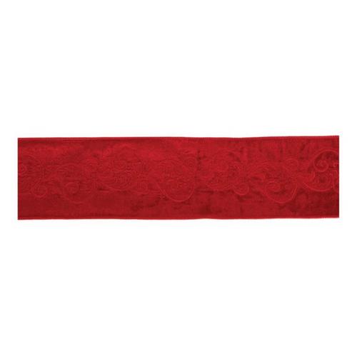 Melrose International Ornate Embroidered Red Wired Ribbon 4" x 5 Yds.
