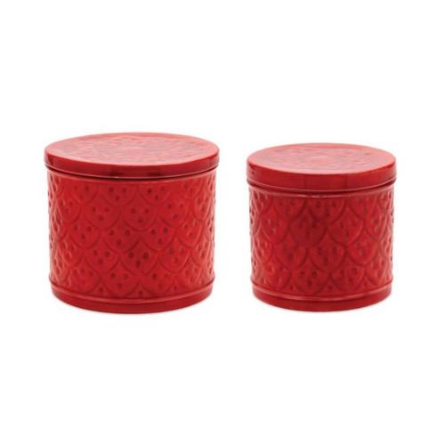 Melrose International Red Metal Container with Lid (Set of 2)