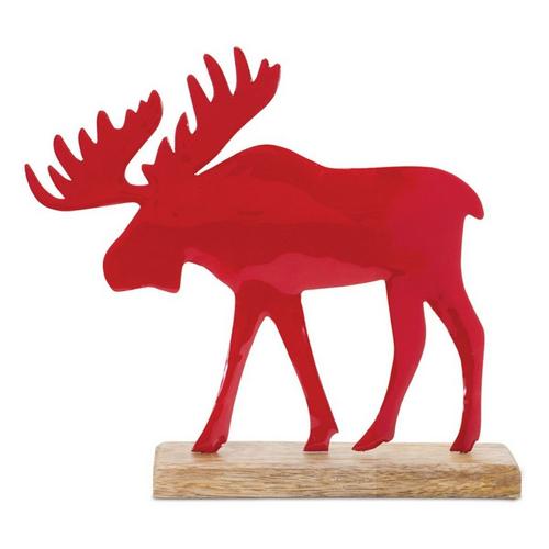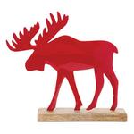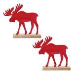 Melrose International Red Moose on Wood Base Dcor (Set of 2)