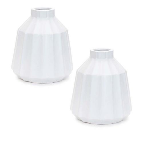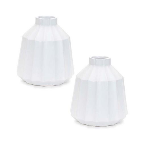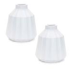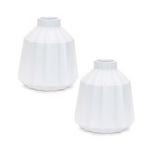 Add a touch of elegance to your home with this set of two ribbed ceramic vases. Featuring a cool white tone with a glazed finish, these vases showcase a modern tapered shape and a bottle neck opening. The ribbed texture brings subtle depth and visual interest to any space. Sold in a set of two matching pieces, they are perfect for enhancing your bookshelf, mantle, coffee table, or end table. Display with fresh garden stems or simple greenery to bring nature into your home. Ideal for modern farmhouse or traditional décor styles, these vases are a versatile and stylish addition to any room.