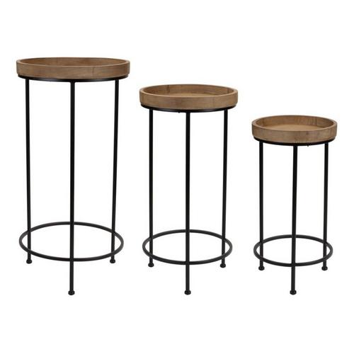Melrose International Round Wood and Metal Plant Stand Table (Set of 2)