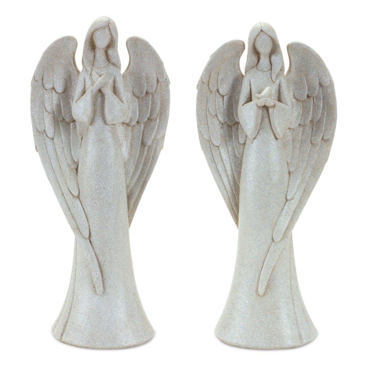 Melrose International Serene Angel Figurine with Bird Accent (Set of 2)