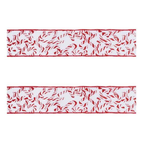 Melrose International Small Candy Cane Print Wired Ribbon (Set of 2)