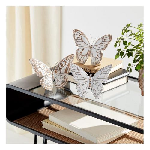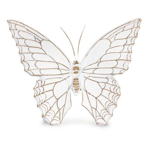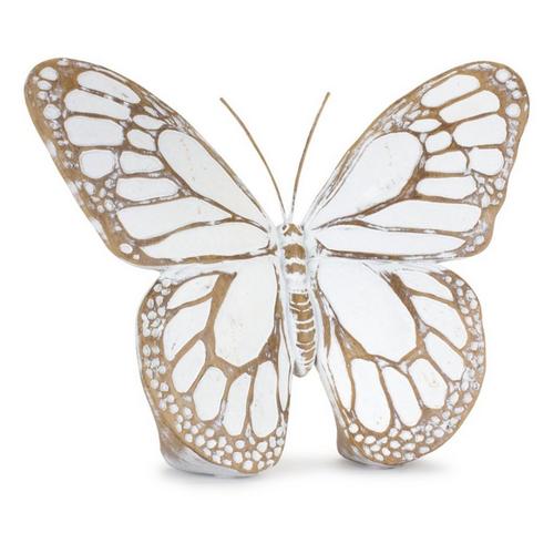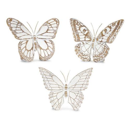 The beautiful set of White-Washed Butterfly Figurines is the perfect addition to your spring decor. Featuring three assorted designs, this set is sure to add a touch of nature to your living space. The bright white and faux wood finish paired with the metal antenae accents is the perfect combination to create a stunning display. Place the pieces togheter to make a statement, or dipslay them throughout your home to add interest to the rooms.