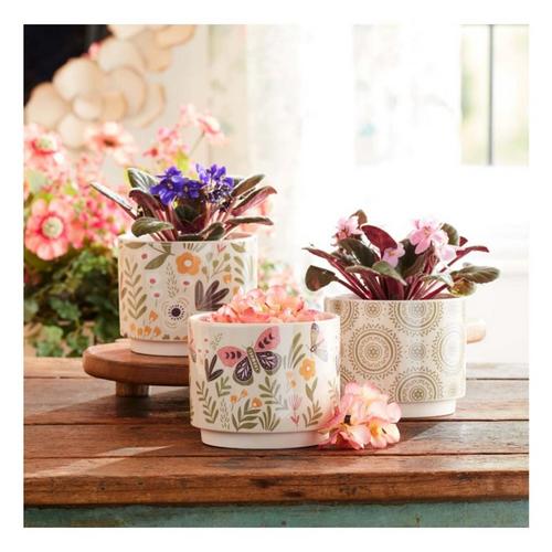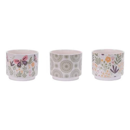 Bring vibrant color and intricate design to your space with the Stone Floral Patterned Planter Set. Featuring bright pink, green, and yellow tones, these planters are adorned with ornate floral, butterfly, and mandala patterns that add a playful yet sophisticated touch. The glazed finish enhances the beauty of the colors, and the set includes three assorted designs, giving you variety and style. These planters are ideal for real or faux plants, and suitable for both indoor and outdoor covered use.