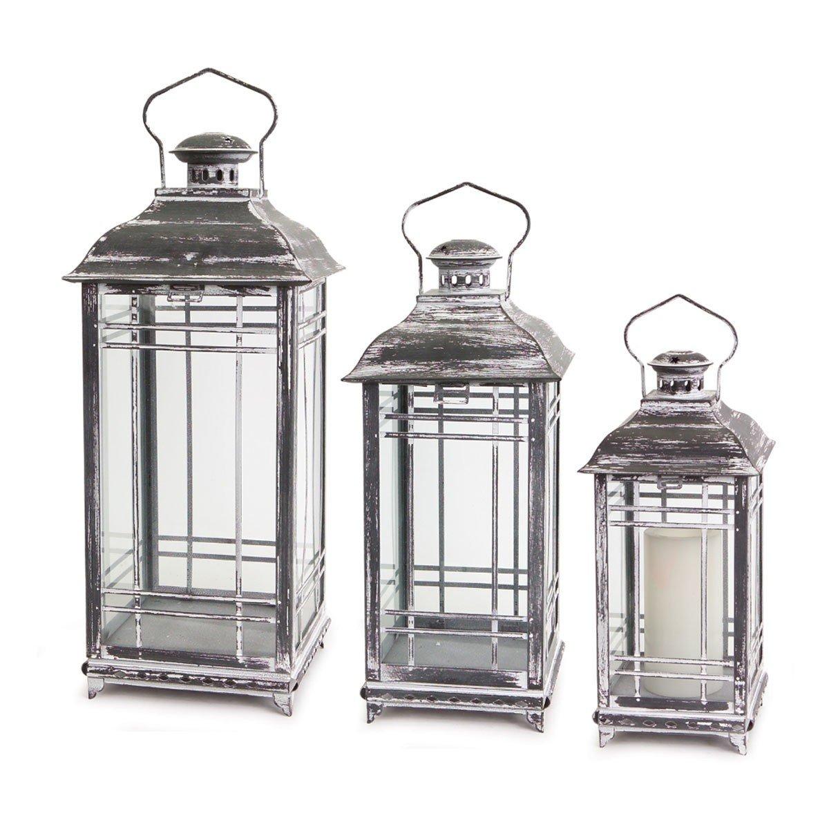 Welcome your guests with this beautiful set of decorative lanterns. Its traditional design paired with the rustic weathered finish is the perfect combination to make a stunning piece. The lanterns are a great addition to both every day and seasonal home decor. The sturdy metal composition is sure to last for seasons to come. Just add real wax or LED candles to complete the look. It also makes a great canvas for DIY faux floral arrangements.