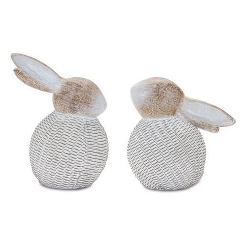 Add a touch of nature-inspired beauty to any room with this elegant set of Wicker Bunny Figurines! Crafted with intricate details and neutral white and beige tones, these eye-catching figures feature a wood grain design, woven wicker accents, and polyresin construction. The rounded design is the perfect finishing touch. Place them on your tabletop or shelf for an effortlessly stylish display.
