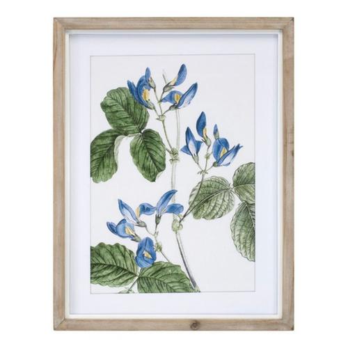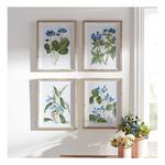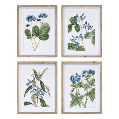 Adorn the walls of your home with this stunning set of Floral Prints. Featuring four assorted designs, this set is a great fit for your country cottage or garden chic style of decor. The cool blue and green tones paired with the natural fir wood frame and painted floral artwork are perfect to create a memorable display. The quality wood and paper composition under glass is sure to endure for seasons to come. Arrange these pieces together to make a statement, or hang them in different rooms to enhance your living space.
