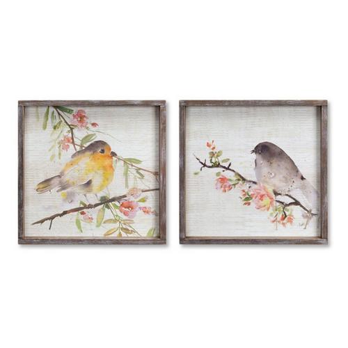Melrose International Wood Framed Watercolor Bird Plaque (Set of 2)