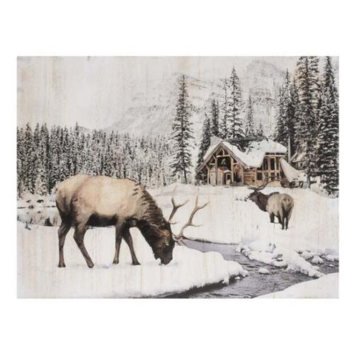 Melrose International Wooden Winter Reindeer and Lodge Plaque 17.5"H