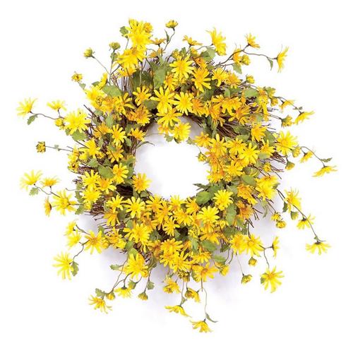 Melrose International Yellow Daisy Floral Wreath 23"D