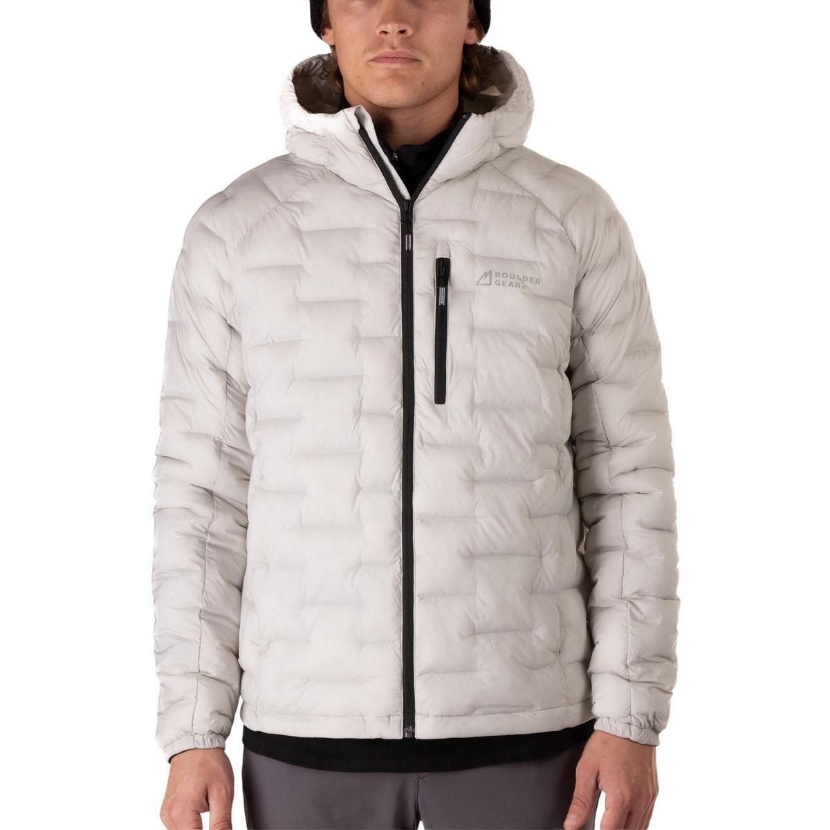 Stay warm and stylish this winter with the Men's Boulder Gear Endurace Hooded Puffer Jacket. Crafted with premium insulation, this jacket offers exceptional warmth without the bulk, making it perfect for outdoor adventures or everyday wear. The durable water-resistant outer shell ensures you stay dry in unpredictable weather, while the adjustable hood provides added protection against the elements. With its sleek design and multiple pockets for convenience, this puffer jacket effortlessly combines functionality with modern fashion, making it an essential addition to your cold-weather wardrobe.