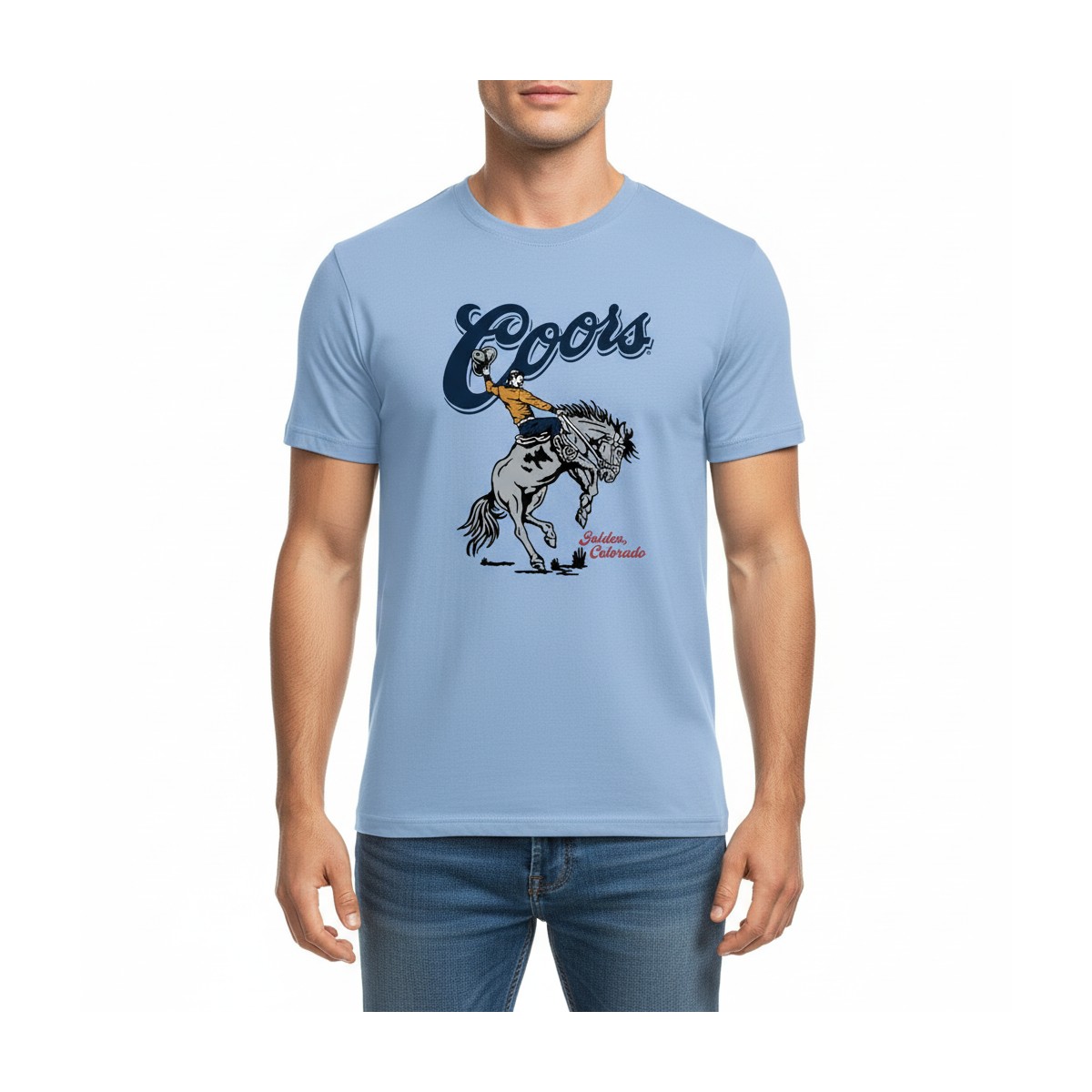 Elevate your casual wardrobe with the Men's Brew City Coors Bronco Born in Rkes T-Shirt, a perfect blend of comfort and style. Crafted from soft, breathable cotton, this tee features a bold graphic design that proudly showcases the iconic Coors Bronco, making it a must-have for fans of the legendary brew. Its versatile fit makes it ideal for pairing with jeans or shorts, ensuring you stay stylish whether you're at a backyard barbecue or a casual outing with friends. Celebrate your love for Coors and stand out with this unique, eye-catching design.