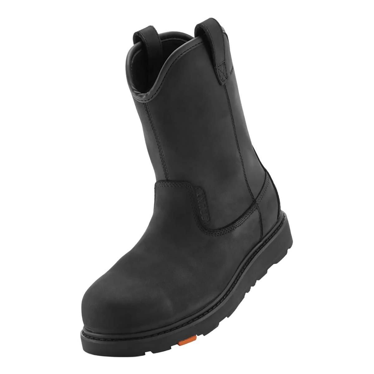 A favorite among plumbers, welders, and truck drivers, the Men's BRUNT The Bolduc 9" Waterproof Soft Toe Work Boots are fully waterproof with a soft non-safety toe. The extra-tall 9" height ensures protection against high waters and provides superior ankle support. Built to defend against jobsite chemicals, the waterproof and barnyard-resistant FARMGUARD™ leather repels rain, mud, oil, and damaging chemicals. These boots also feature a slip-, oil-, and high-heat-resistant outsole for enhanced performance. The Bolduc brings next-level comfort to the jobsite without any break-in period, thanks to the BRUNT CUSH’N® insole system and a durable PU midsole.