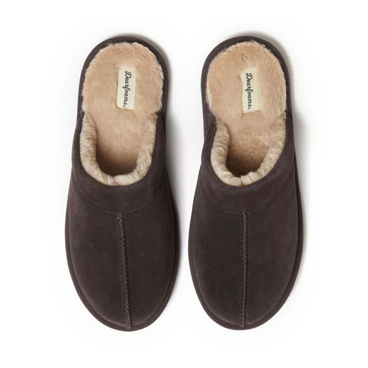 {"reviews":[{"id":7770794,"locale":"en_US","rating":1,"title":null,"text":"For me the slipper is very heavy; resulting in not being comfortable on the top of the foot and weight causing pain. Dont agree with being charged to return and ship them back. Additionally reached out to request a suggestion for another lighter slipper, as an exchange would have been preferable originally, and did not receive a response that addressed my inquiry.","textLength":366,"csFlag":false,"inappropriateFlag":false,"reviewedFlag":false,"autoModerated":false,"published":true,"incentivized":false,"upVotes":0,"downVotes":0,"orderId":null,"dimensions":[],"responses":[],"tags":[],"media":{"photo":[],"video":[],"audio":[]},"user":{"nickName":"n/a/","firstName":null,"lastName":null,"emailAddress":null,"externalId":null,"city":null,"state":null,"country":null,"ageRange":null,"badge":null,"shopperProfiles":[]},"reviewedDate":null,"purchaseDate":null,"dateCreated":"2026-01-21T00:00:00-05:00","customData":[],"acceptedTermsAndConditions":true,"incentiveType":null,"campaign":null,"deviceFingerprint":null,"topics":[],"syndication":{"sourceName":"Dearfoams","siteUrl":"https://www.dearfoams.com/","logoUrl":"https://images.turnto.com/site/syndicationlogos/1859_LH48.png"},"catalogItems":[{"sku":"39161-41251","title":"Men's Dearfoams Kirk Genuine Suede Scuff Slippers","url":"https://www.scheels.com/p/39161-41251","category":"slippers","reviewCount":1,"ratingCount":1,"averageRating":1,"ratingBreakdown":{"1":1,"2":0,"3":0,"4":0,"5":0},"active":true,"attributes":[]}]}],"offset":0,"limit":10,"total":1}"Full Description:\nScuffs are classics for a reason. But even best-sellers can get better; that's why we designed these with naturally temperature-regulating material for 24/7, 365 comfort.\n\nFeatures:\n\u003cul>\n\u003cli>MEMORY FOAM: Our superior comfort memory foam insoles cradle your feet with every step.\u003c/li>\n\u003cli>EASY ON/OFF: Comfort's just a step away thanks to an easy on/off design.\u003c/li>\n\u003cli>TEMPERATURE REGULATING: No matter the weather, this style is sure to help you stay cozy or cool.\u003c/li>\n\u003cli>GENUINE SUEDE: Equal parts durable and soft, these genuine suede slippers were made with long-lasting comfort in mind.\u003c/li>\n\u003cli>INDOOR/OUTDOOR DURABILITY: Relax wherever the day takes you with durable and convenient indoor/outdoor outsoles.\u003c/li>\n\u003cli>Regular width for a comfortable fit\u003c/li>\n\u003cli>Designed for adult men\u003c/li>\n\u003cli>Genuine suede upper for lasting quality\u003c/li>\n\u003cli>Ideal for casual, indoor wear\u003c/li>\n\u003cli>Temperature-regulating material for year-round comfort\u003c/li>\n\u003cli>Classic scuff design for easy on and off\u003c/li>\n\u003cli>Available in black and brown\u003c/li>\n\u003c/ul>\n\n"