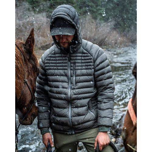 The outer 20D DWR-treated fabric keeps feathers in and moisture out. Paired with a lofty 850 FP Granger DWR-treated down, this jacket will keep you warm and dry during low and mid-levels of activity in the field. Graphene filled side panels maintain loft and enhance thermal conductivity, keeping you comfortable when temperatures swing throughout the day.