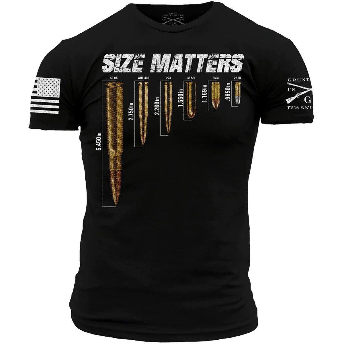 The Men's Grunt Style Size Matters T-Shirt is designed with comfort and style in mind. Made from a blend of soft, durable cotton and polyester, the Men's Grunt Style Size Matters T-Shirt features a signature fit that allows for freedom of movement and maximum comfort. With a unique, eye-catching design, the Men's Grunt Style Size Matters T-Shirt is the perfect way to show off your patriotism.