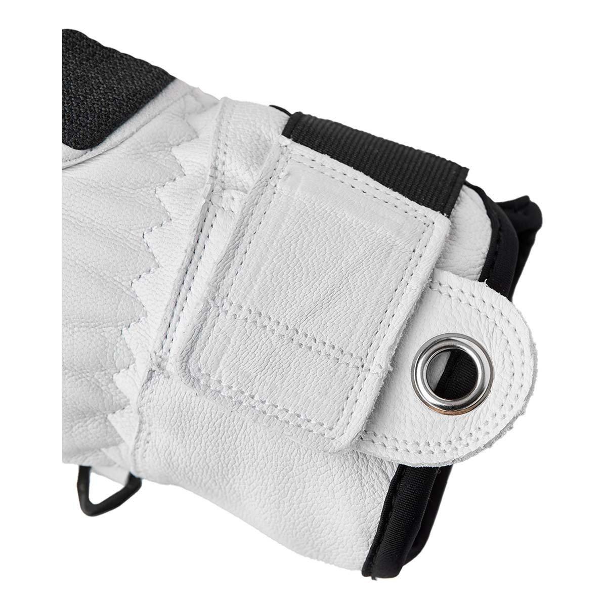 Army Leather Patrol is a warm, durable 5-fingers ski glove with clever functions. It builds upon the same robust concept as Hestra's Heli Ski model, but is designed to be worn under the jacket sleave with a comfortable neoprene collar that encircles the wrist. Fingers and palm are made ofimpregnated goat leather with outseams that provide comfort and a sensitive grip, while the backhand is made with flexible and weather resistant softshell fabric. A fleece liner with synthetic insulation keeps fingers warm even in low temperatures, and can easily be removed to wash or dry. You can also replace the insulation with a thinner liner to adjust the warmth if you are hiking and sweating more, for example. A wrist strap reduces the chance of dropping the glove if you take it off to adjust your equipment. A carabiner is also included along with an eyelet and hanging loop, providing several attachment options. A durable and reliable companion for those spending long days outdoors in the snow and cold, and who prefer to get away from the ski resort and its comforts.