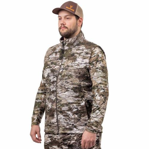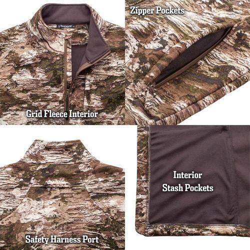 Our Elkins mid-weight vest in Tarnen® digital camo is a workhorse garment that you will reach for throughout the season. Constructed of a triple layer fabric made with In-Velvet® low pile fleece bonded to a waffle fleece and a windproof breathable film, the vest can be worn alone or as part of a layering system. It features Microban® antimicrobial product protection on the inner waffle fleece to control your scent. The vest is whisper quiet so you can track your prey undetected. A DWR finish allows the fabric to shed light moisture, and an inner storm flap blocks wind and rain. Use the three zippered pockets to keep your gear nearby. This vest is a keeper for sure.