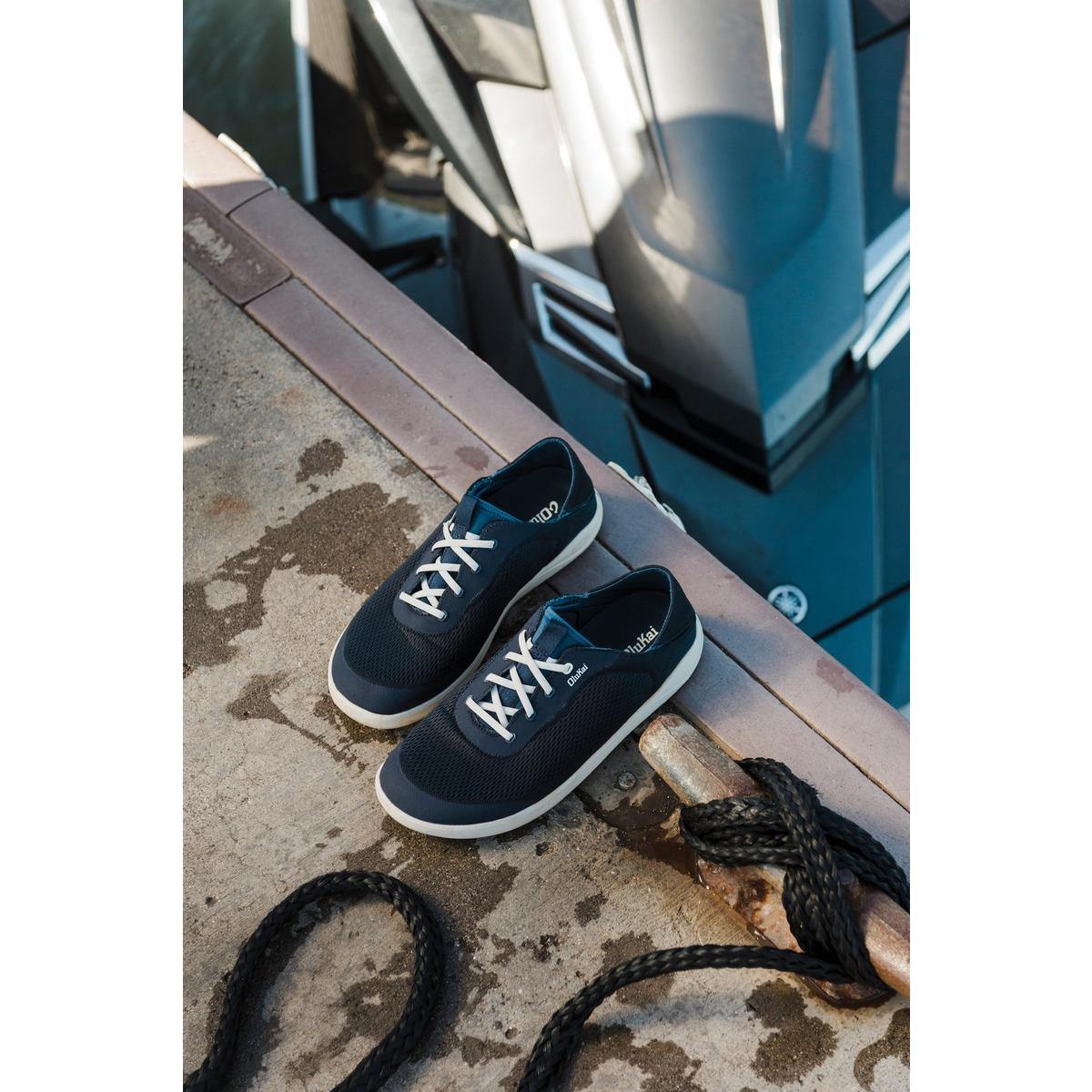 The Moku Pae Men's Shoes by OluKai combine comfort, style, and functionality for ocean lovers. Designed with a breathable mesh upper and no-tie laces, these shoes are perfect for both water and land activities. Featuring a quick-drying, water-resistant construction, they also include a collapsible Drop-In Heel® for easy barefoot wear. With a Wet Grip Rubber® sole for enhanced traction, the Moku Pae men's shoes offer all-day comfort and support, making them ideal for boating, beach days, and outdoor adventures.
