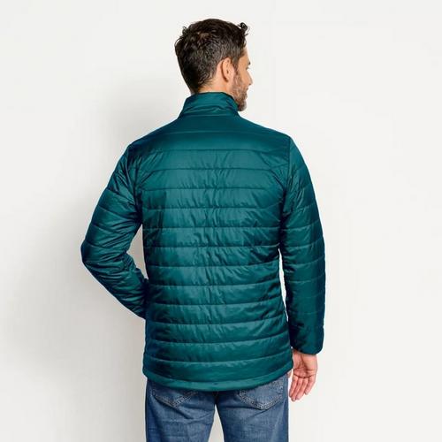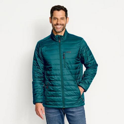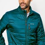 Lightweight warmth is critical when layering for colder weather. To achieve that, we created our most eco-friendly, insulated outerwear yet. The DWR-treated shell is made of 100% recycled polyester in a rugged ripstop weave; the insulation uses 100% post-consumer recycled fibers. The ultimate synthetic insulation for warmth-to-weight ratio, bluesign®-approved, top-of-the-line, packable PrimaLoft® Gold retains warmth even when wet. Soft, tricot-lined (and zipped) handwarmer pockets provide extra protection from the cold, as does the cinch at the waist. Chevron-quilted with a stand collar and a chest pocket. The jacket stuffs into its internal zipped pocket. Active Fit.
