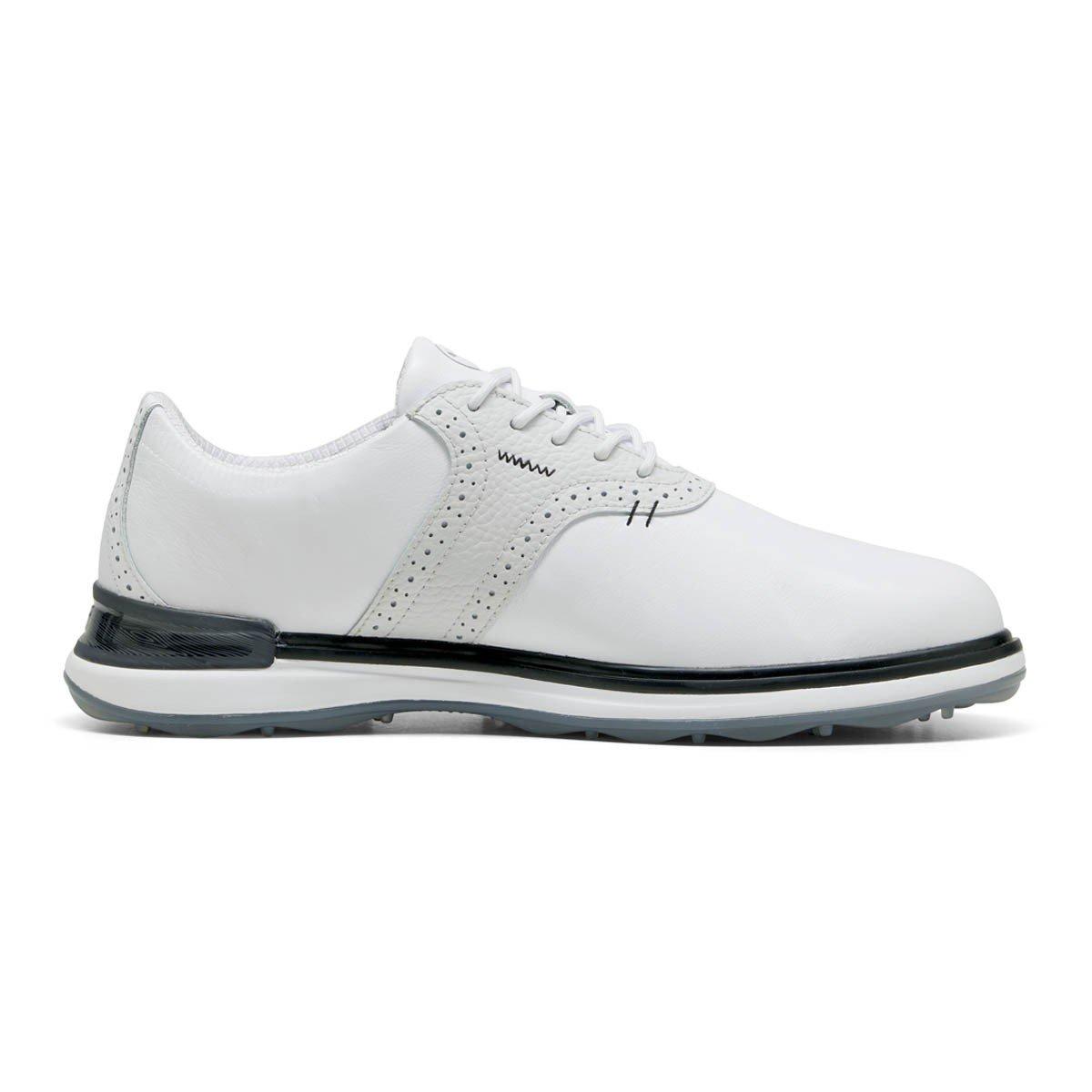 Elevate your golf game with the Men's Puma Avant Spikeless Golf Shoes. Crafted with a premium full-grain leather upper, these golf shoes offer a sophisticated look and performance thanks to the one-year manufacturer's waterproof warranty. Experience all-day comfort with the full-length PROFOAM EVA midsole, providing superior cushioning with every step. The innovative radial traction technology and ENR rubber outsole ensure exceptional grip on any surface, while the ProClip TPU heel counter delivers a secure fit and 360-degree stability throughout your swing. Conquer the course in style and confidence with the Puma Avant Spikeless Golf Shoes.