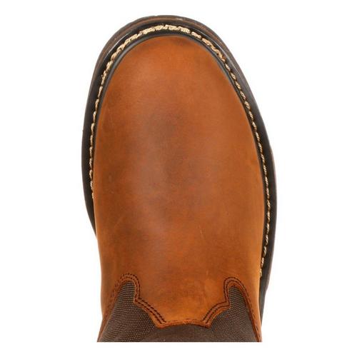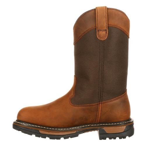 After you step into the Rocky® Ride Insulated Waterproof Wellington Boot, you won't want to stop. This boot puts concerns for warmth and dryness at the forefront of focus, where they belong. Combining guaranteed Rocky Waterproof construction with 200 grams of 3M™ Thinsulate™ Insulation ensures you'll feel the comfort you seek during life's less accommodating conditions. Never let frigid feet and wet toes ruin a good time again. With the 8-Layer Rocky Ride Comfort System, you'll be more than warm and dry. You'll be comfortable! This insulated boot has an EVA midsole that absorbs shock, relieving you of painful impact that could slow you down, while a removable dual-density polyurethane Ride footbed with heel stabilizer steadies every step. Whether you're running errands, exploring the woods or making your way to work, you can feel confident that your feet will be feeling fine in this comfortable boot. A dedication to durability in the construction of this men's boot lets you look forward to years of comfort to come. With a Goodyear® welt construction, stitching surrounds your whole outsole, freeing you to carry on fearlessly in any environment. There's no need to worry when you know your boots will withstand tough conditions. This 10-inch boot comes in full-grain brown leather, a practical and attractive option for any event. If you're looking for exceptional dependability in a versatile look, the Rocky Ride Insulated Waterproof Wellington Boot is for you.