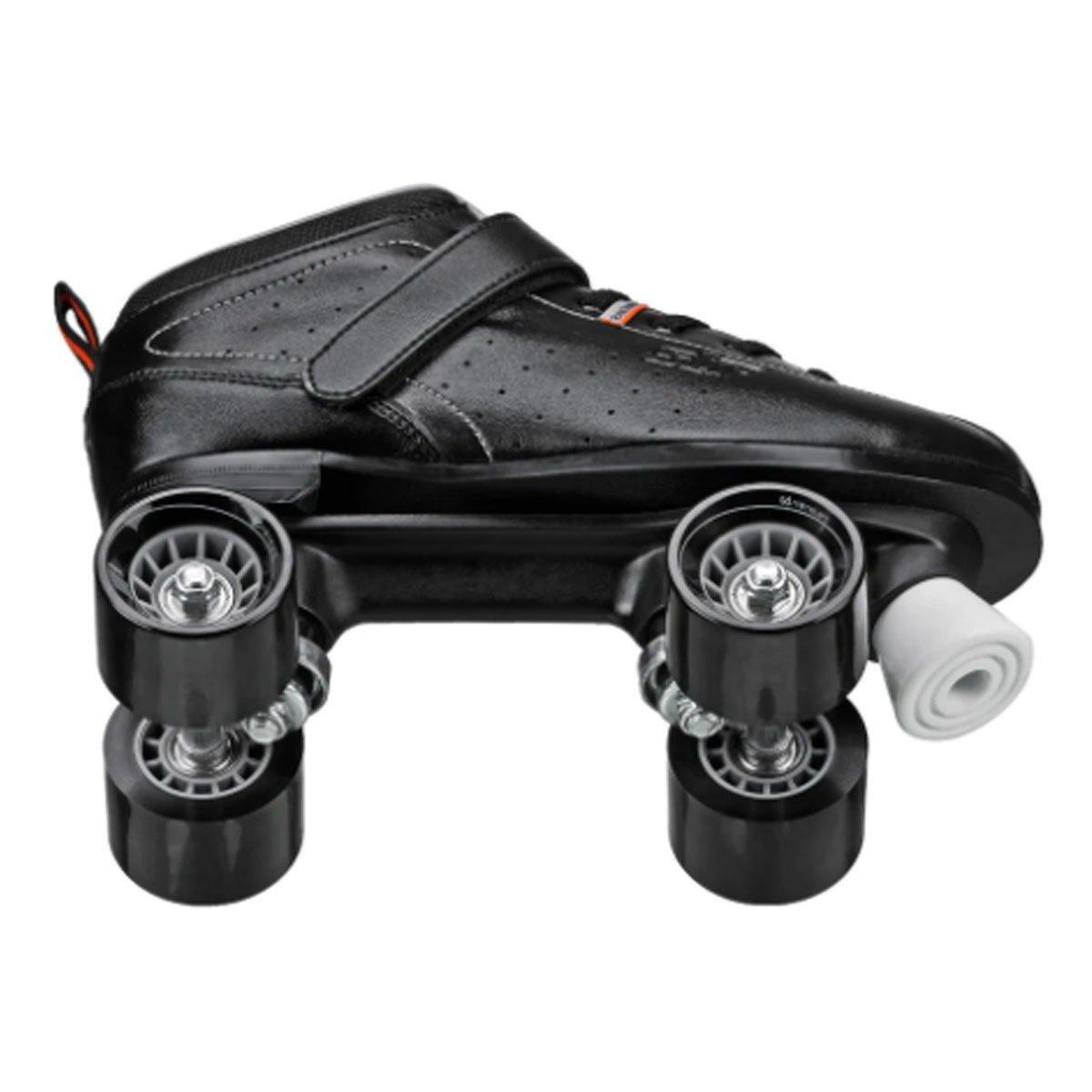 Whether you are a novice who is ready to roll or you are looking to get back to skating, the STR Seven from Roller Derby Skates will have you on the street or rink in no time at all. The classic lowtop boot design with lightweight chassis enables easy maneuverability and control. Traditional lacing and power strap help keep things simple, while the fashionable design helps get the most out of your skating experience. The roller skates for adults feature PU foam in the boots that keep feet snug and well cushioned. The liner of these quad roller skates provide quick-dry comfort. STR 7 is equipped with 58mm X 40mm sturdy urethane wheels and is loaded with Bevo™ Silver - 5 Race Rated (Chrome) bearings to deliver speed and control. They are set on AMQ Pro Frame chassis and feature 5/8 inch fixed toe stop. These skates fit true to U.S. shoe sizes.