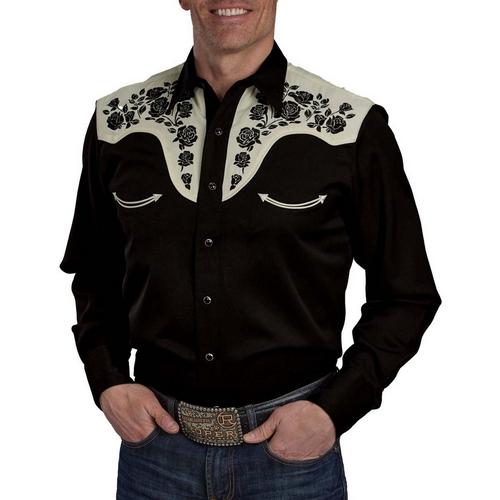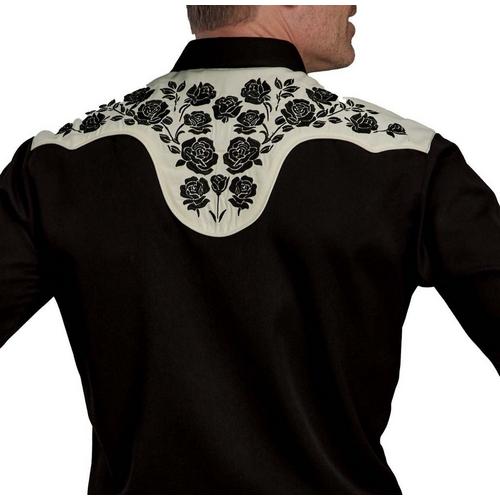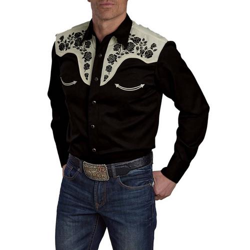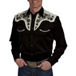 Men's Long Sleeve Shirt * Poly/Rayon Twill * Contrast Front & Back Yokes With Floral Embroidery * Contrast Piping * Smile Pockets With Embroidered Arrow Pts * 3 Snap Cuff * Snap Closure