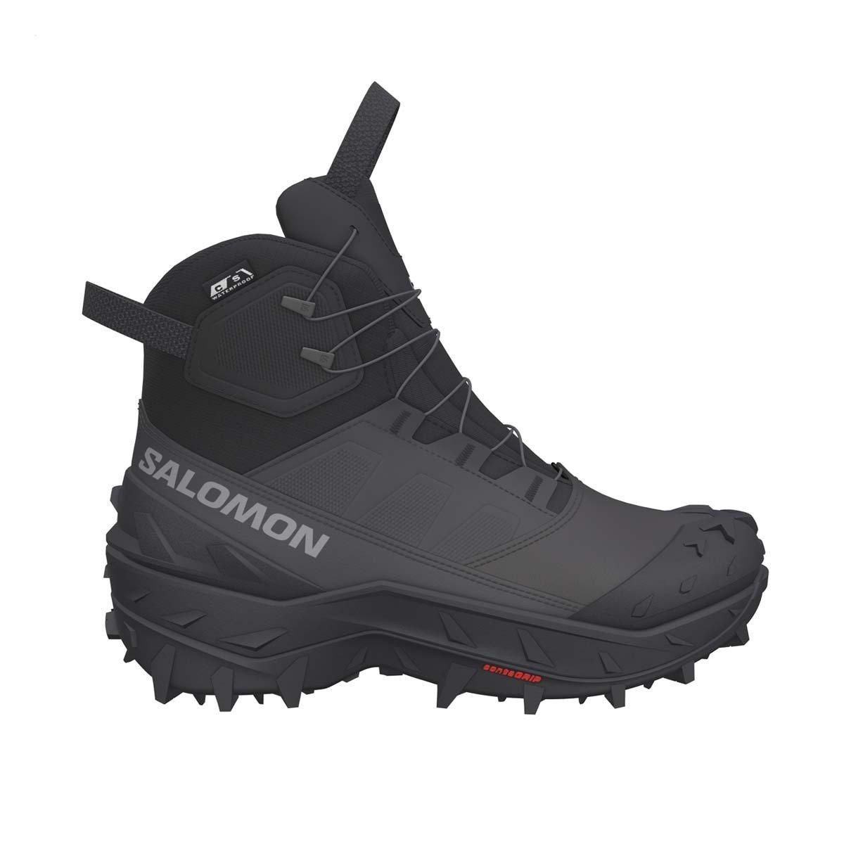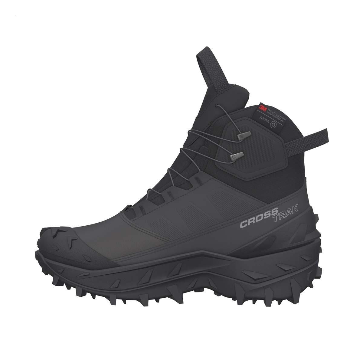 The Men's Salomon Crosstrak Powder Waterproof Hiking Boots are designed for winter exploration, offering both support and the ability to last. The Winter Contagrip® outsole specializes in excellent lug traction on deep or packed snow with wrap-around lug grip. Equipped with adv.WARM insulation and the adv.DRY waterproof membrane, these boots keep your feet warm and dry in cold conditions. The Quicklace™ system makes them easy to put on, take off, or adjust, even while wearing gloves. The Men's Salomon Crosstrak Powder Waterproof Hiking Boots are made for exploration without the worry of freezing temperatures.