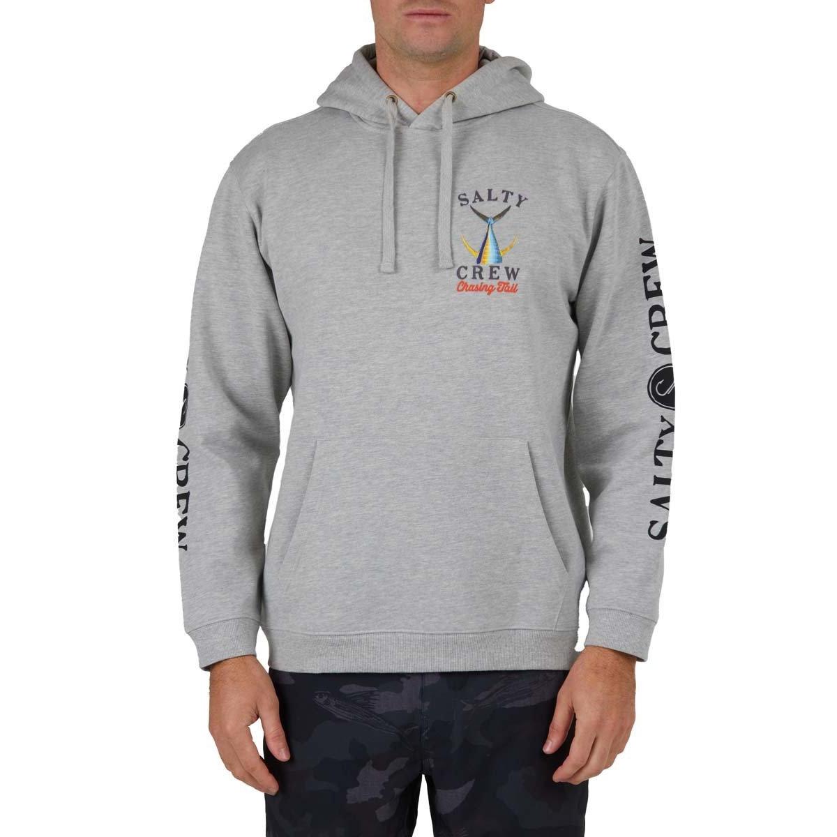The Men's Salty Crew Tailed Hooded Pullover is a comfortable layer for running errands or lounging around the house. Made with soft, durable material, this Salty Crew hoodie will feel soft next to your skin, while the ribbed wrist cuffs and hem offer a better overall fit. The hood features adjustable drawcord closures for a secure fit, while the kangaroo pocket provides plenty of storage space. Stay comfortable in the Men's Salty Crew Tailed Hooded Pullover.
