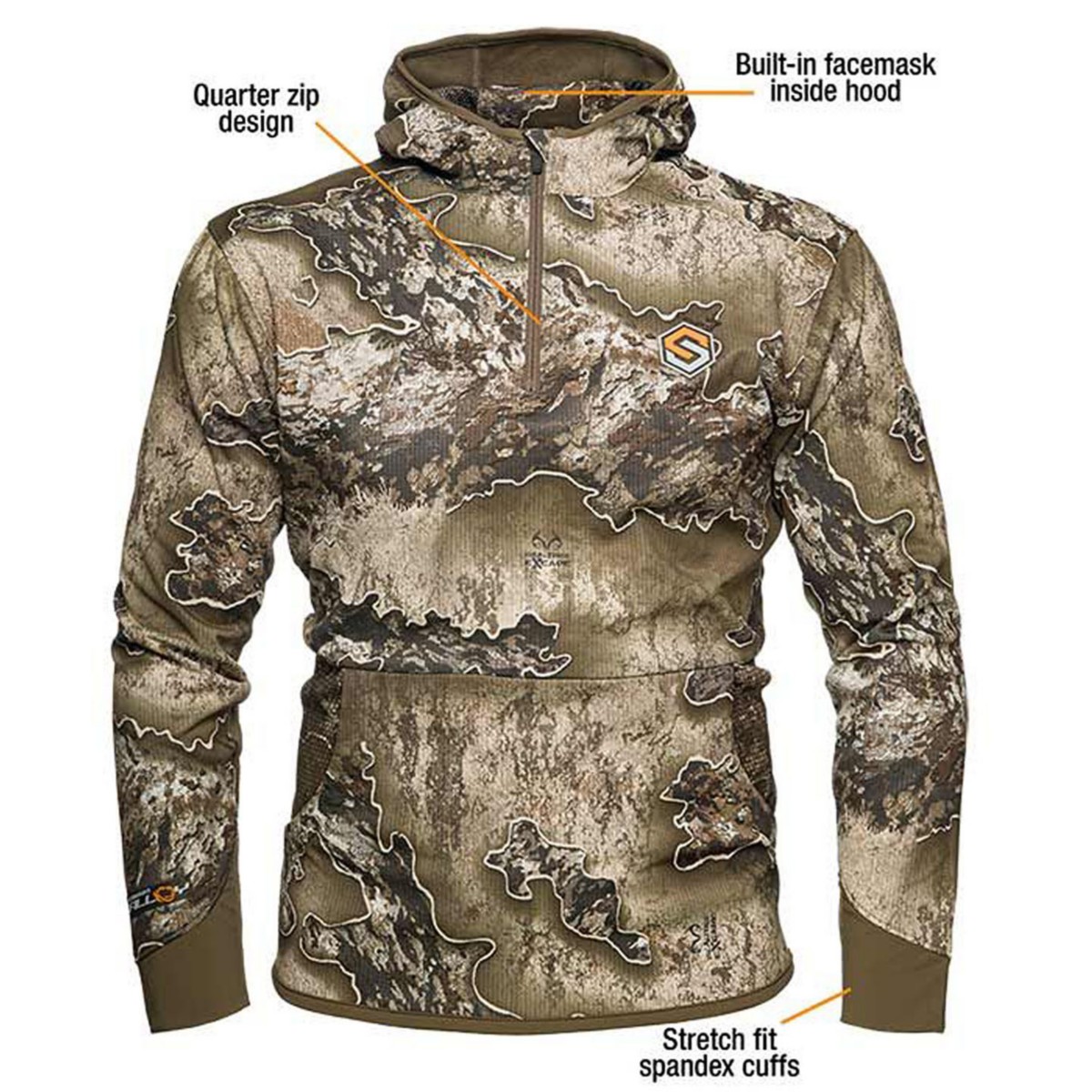 The Men's ScentLok Savanna Aero Raid Technical Pullover is a lightweight hoodie ideal for early-season hunts. This ScentLok hoodie features smooth polyester fabric and a micro-fleece liner for max comfort and lightweight warmth. Shoulder stretch panels move with you for freer movement, while the moisture-wicking fabric keeps you cool, dry, and comfortable. Plus, this lightweight hunting hoodie has Carbon AlloyTM technology and an antimicrobial treatment to absorb and control odor. Built for lightweight warmth, the Men's ScentLok Savanna Aero Raid Technical Pullover is great as an outer layer during early season or as a layering piece in colder weather.