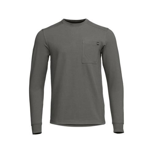 The weekend and this classic cotton long-sleeve shirt go together like meat and fire. The Foothills Long Sleeve Crew is built to wear easy, not wear out, thanks to an ultra-durable, soft cotton blend with added stretch and triple-needle stitching. SITKA branding on the pocket and bottom hem make it stand out.