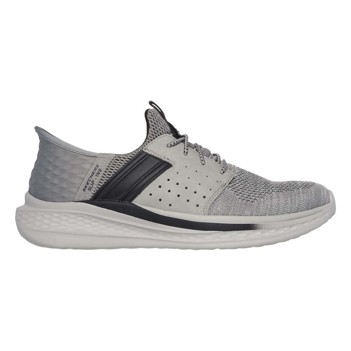 Step into convenient walking comfort with Skechers Slip-ins® Relaxed Fit®: Slade - Ocon. Designed with our exclusive Heel Pillow™, this stretch-laced style features a mesh and synthetic upper with a charcoal-infused Skechers Air-Cooled Memory Foam® insole and Skechers Goga Mat Arch™ support.