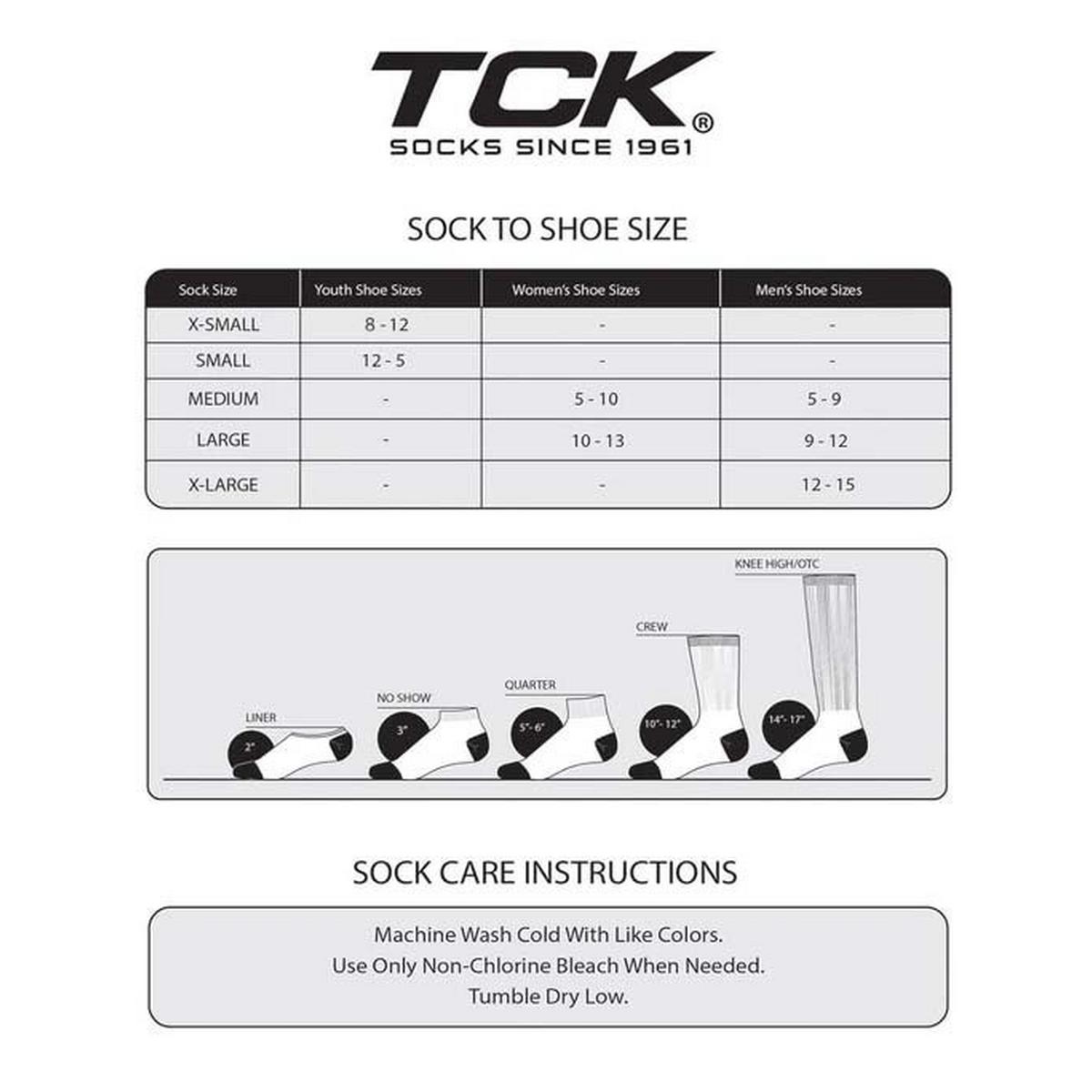 TCK Allsport otc socks are a must have for your next game, outing, or practice. Designed by the leaders in team athletic socks, the Allsport is the ideal weight and length for athletes, while it also provides maximum performance and durability. TCK was founded in 1961 in North Carolina, where we still operate today. When purchasing TCK products, you can feel proud to support a USA based company that directly supports American employees.