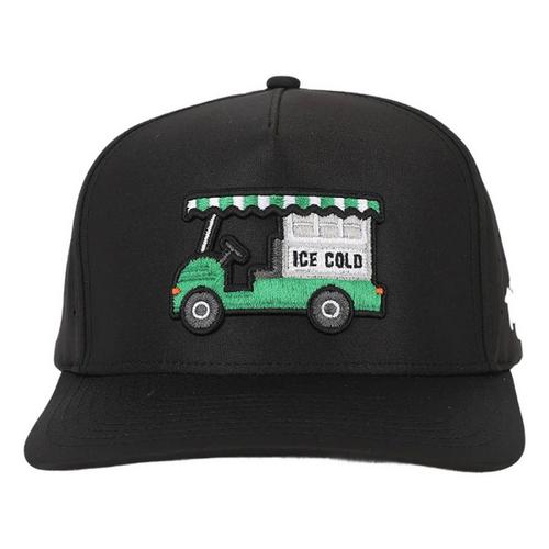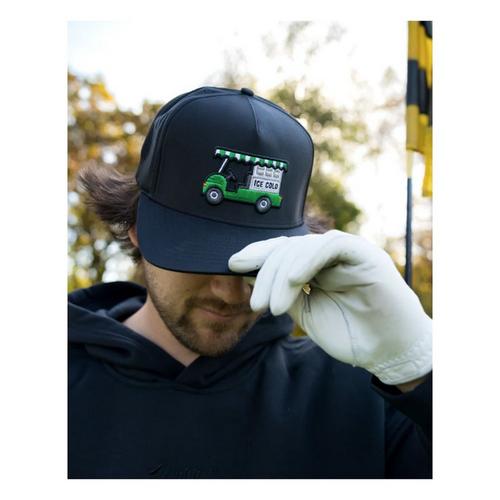 The golf course bev cart is the ice cream truck of adulthood—a beacon of birdie juice rattling down the fairway to put your mind (and your swing) at ease. If you’ve only ever had one answer to “you need anything?”, this comfortable snapback hat is for you.