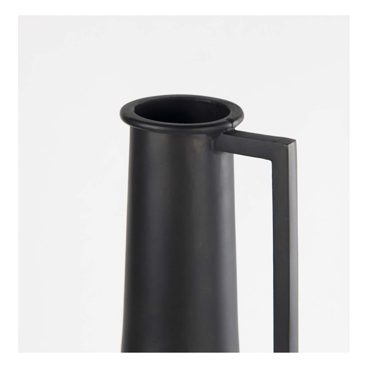 Modern and distinguished, the Aubrey vase is eyecatching with its burnished black finish and strong, cast-iron construction. Fall in love with its sleek, geometric handle and long, elegant form. It's perfect as a standalone statement or grouped with others in the Aubrey collection.