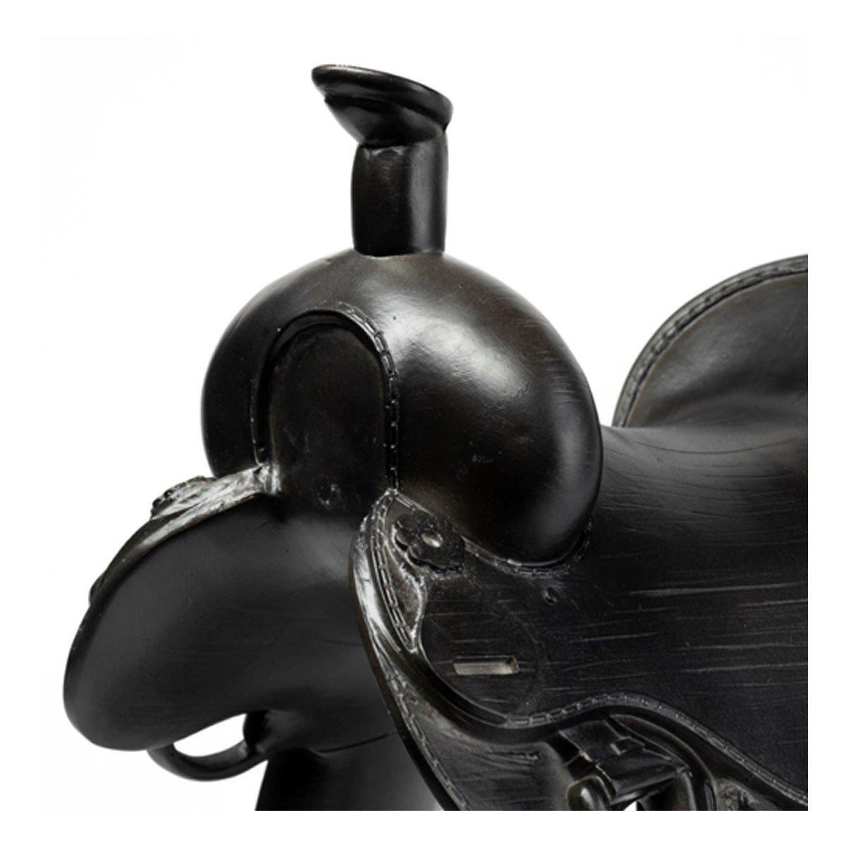 Crafted from resin and metal components and finished in black polish, the Colt is an impressive decorative object that resembles a horse's saddle. We recommend this uniquely designed, equestrian-inspired decorative piece for spaces based on the Farmhouse or Mercana Modern design styles.