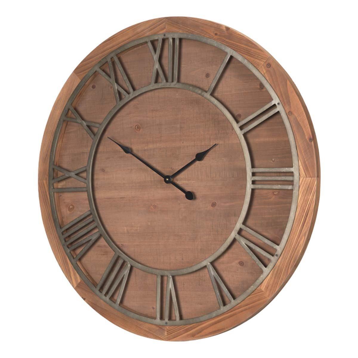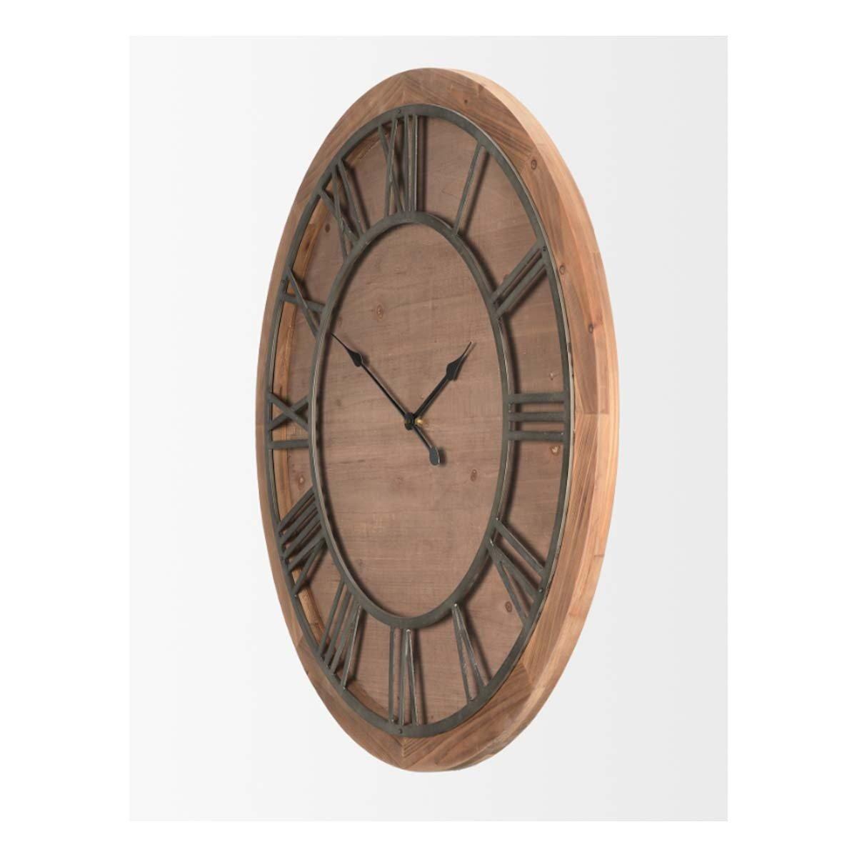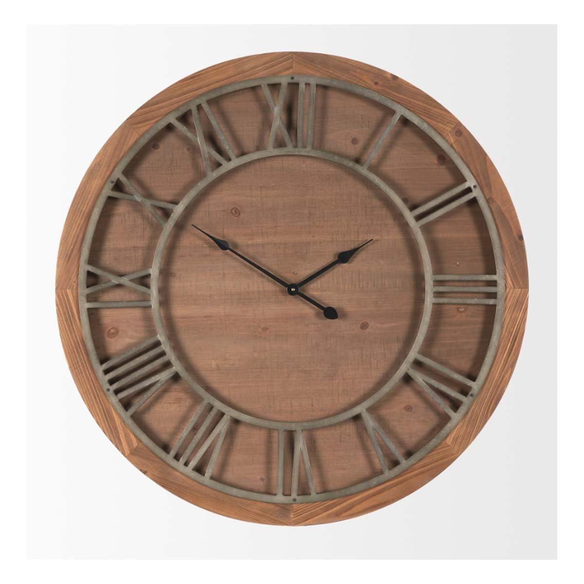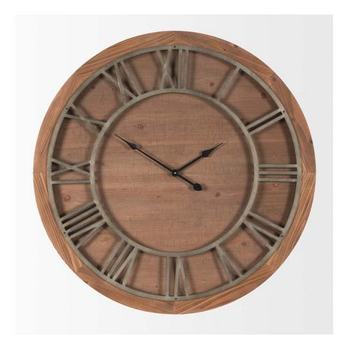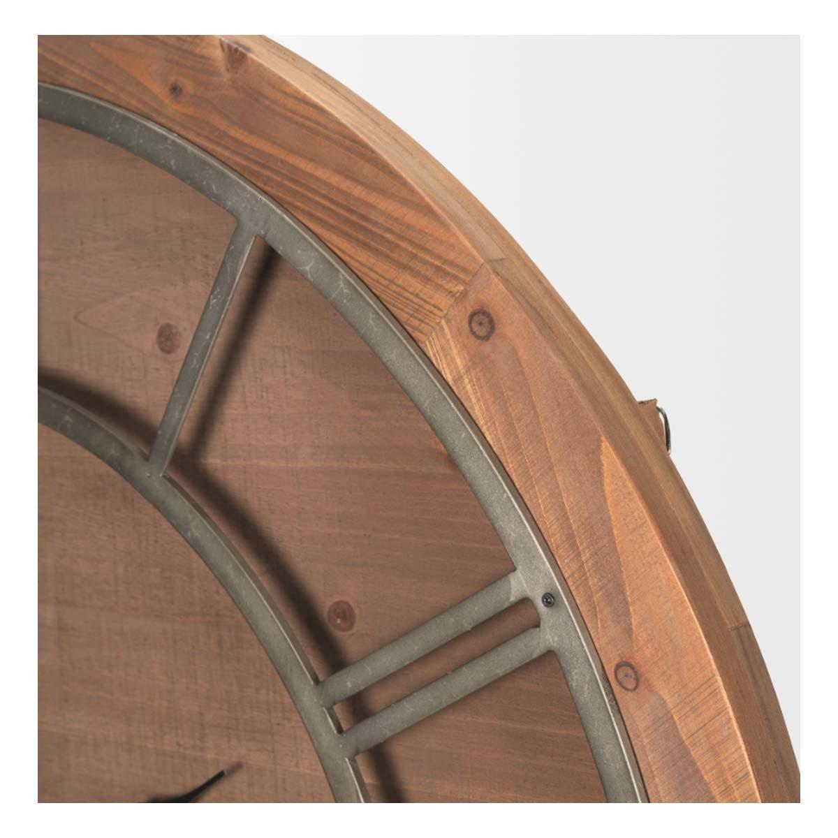 Mercana Raul Medium Brown Wood W/ Silver Metal Wall Clock