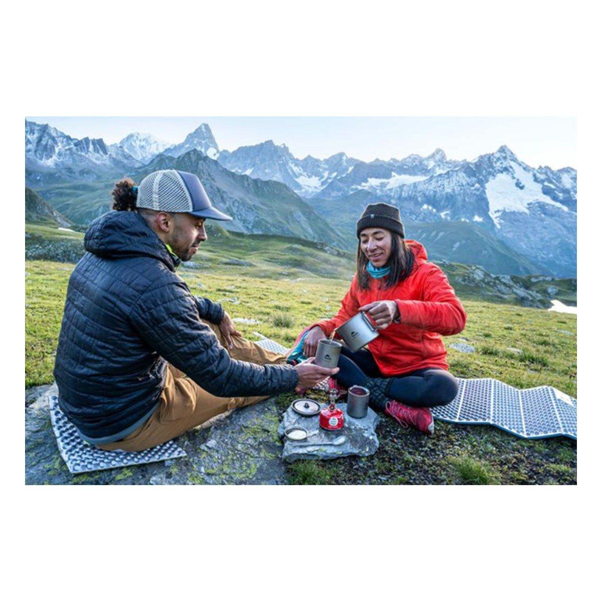 Perfect for a solo backpacker or anyone looking to shave some pack weight, the updated Titan Kettle 900mL punches well above its ultralight weight class in performance and packability. This titanium cook pot features interior graduation lines, allowing for fast and easy volume measuring for dehydrated meals and drinks. Updated silicone-coated folding handles are comfortable to hold and an improved spout makes precision pouring easier. The snug-fit lid has a silicone hanger to keep it safely out of the dirt. Plus, the entire Titan cookware collection nests together, often with a stove and/or fuel canister so you can easily build your ideal kitchen setup.