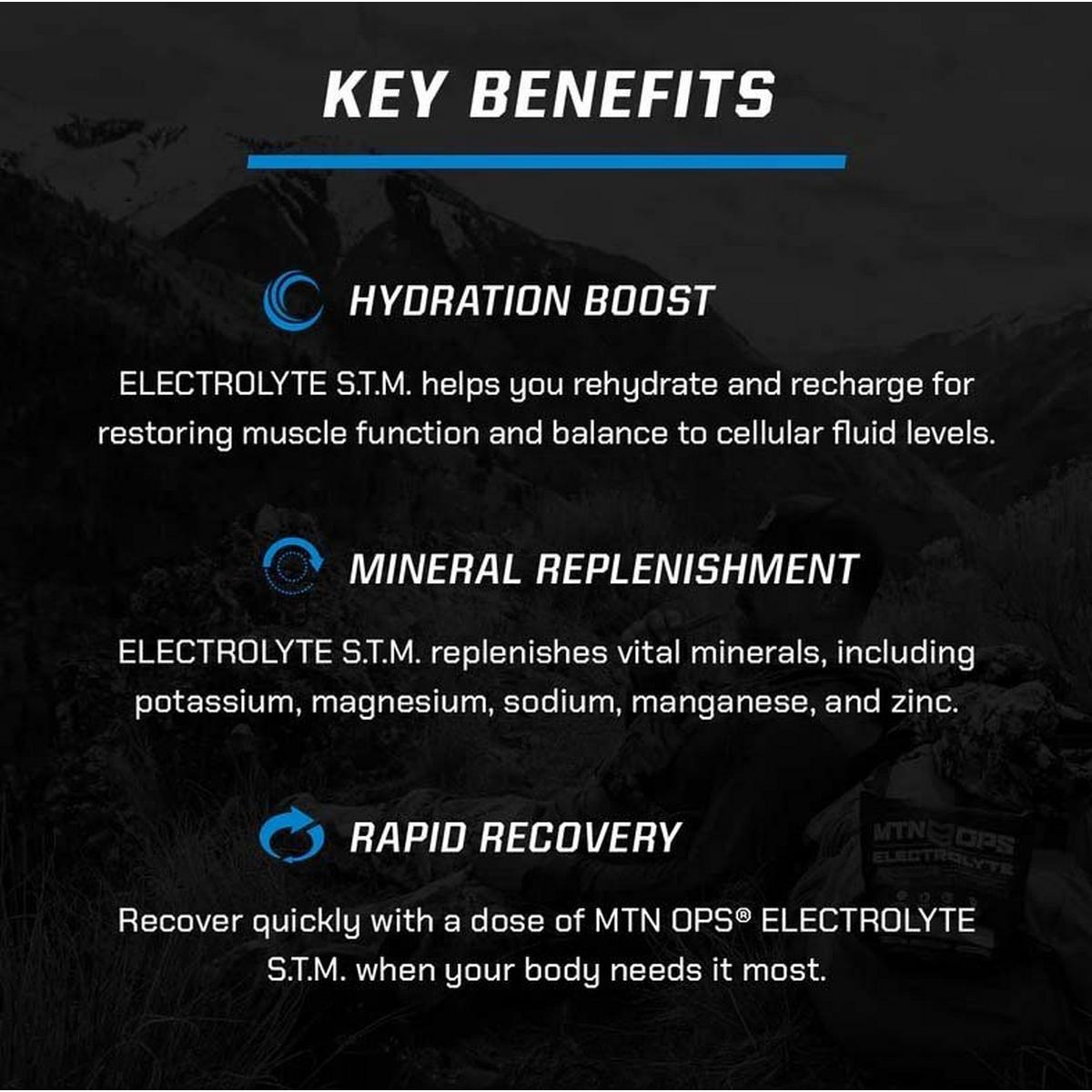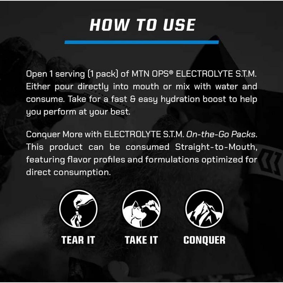 Electrolyte STM (Straight-to-Mouth) refuels when your body needs it most. Providing a boost of essential minerals for hydration including potassium, magnesium, sodium, manganese, and zinc - these convenient straight-to-mouth packs give a quick dose of electrolytes for muscle function and restoring electrolyte levels as you train, hike or enjoy being active.