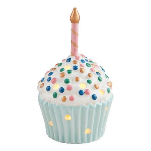 Cupcake Light-Up Sitter. This charming hand-painted ceramic sitter is designed to bring a touch of whimsy and warmth to any space. Featuring intricate cut-out details, it allows the LED light to shine through, creating a delightful ambiance. The included battery ensures that it's ready to illuminate your home right out of the box. Measuring 4 1/4" x 2 3/4", this delightful piece is crafted from high-quality dolomite, offering both durability and a smooth finish. Perfect for adding a playful yet elegant touch to your decor, this light-up sitter is ideal for any room or occasion.
