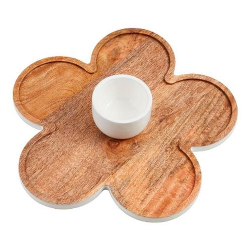 The Mud Pie Flower Dip Board Set features a charming flower-shaped board with a matching dip bowl, perfect for serving snacks with a touch of whimsy. Ideal for gatherings, it combines style and functionality effortlessly.